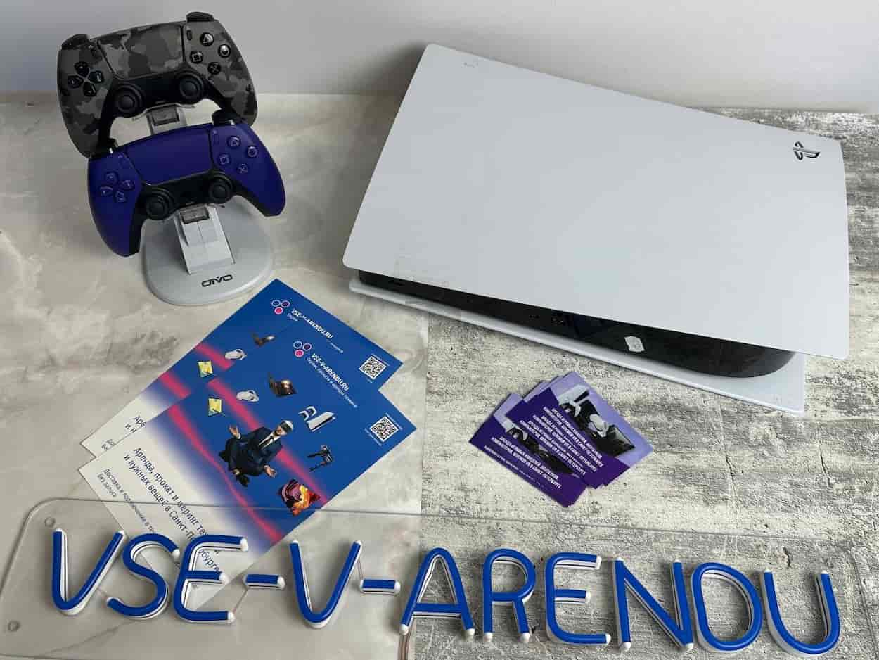 Для подключения к телевизору используется видеокабель, входящий в комплект поставки. Также в комплекте идёт беспроводной контроллер DualSense, который обеспечивает точное управление и обратную связь в играх.